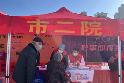 同日上午,市第二人民医院感染科到阜阳时代广场开展“世界艾滋病日”宣传义诊活动,医护人员通过设置免费咨询点,为过往群众发放艾滋病防治宣传手册,并详细介绍艾滋病病因、症状、传播途径、检测、预防等,向市民普及艾滋病防治等相关知识。同时,还为前来咨询的群众测血压、血糖、做心电图检查,面对面地为群众提供专业的治疗建议和用药指导,对于部分患有高血压、糖尿病的居民提供健康指导等。
