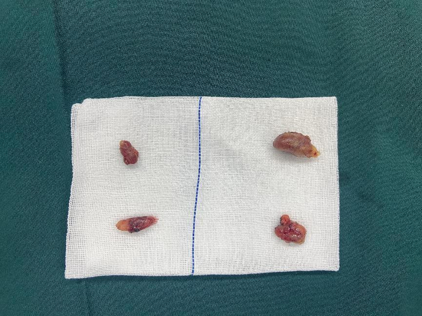 在介入肾脏科、耳鼻咽喉-头颈外科和麻醉科共同评估无手术禁忌后,耳鼻咽喉-头颈外科主任副主任医师李华文、副主任医师刘武以及住院医师周泽路医疗团队于12月9日在全麻下为该患者行“甲状旁腺全部切除术”,术中将4个甲状旁腺全部切除,术后即刻甲状旁腺激素降至正常范围,同时患者无声嘶、颈部血肿、神经损伤、切口感染等并发症,皮肤瘙痒及骨痛症状明显缓解。
