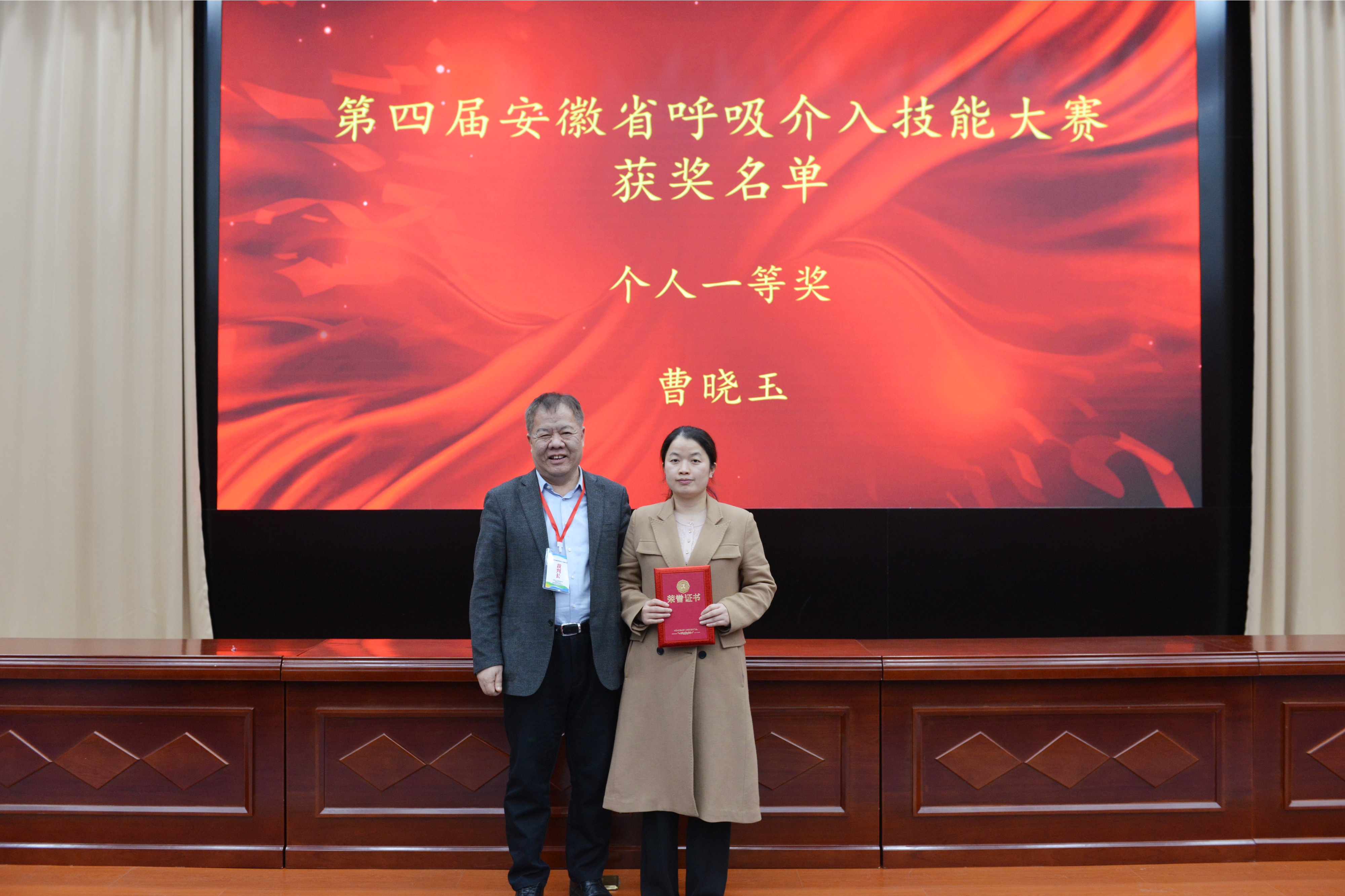 11月25日—26日,我院承办了第四届安徽省呼吸介入技能大赛,曹晓玉荣获一等奖;2月9日,在安徽省第二届气管插管及呼吸机操作临床技能竞赛中,我院呼吸与危重症医学科危重症病区呼吸治疗师何淑婷获呼吸机操作单项二等奖、气管插管单项三等奖。