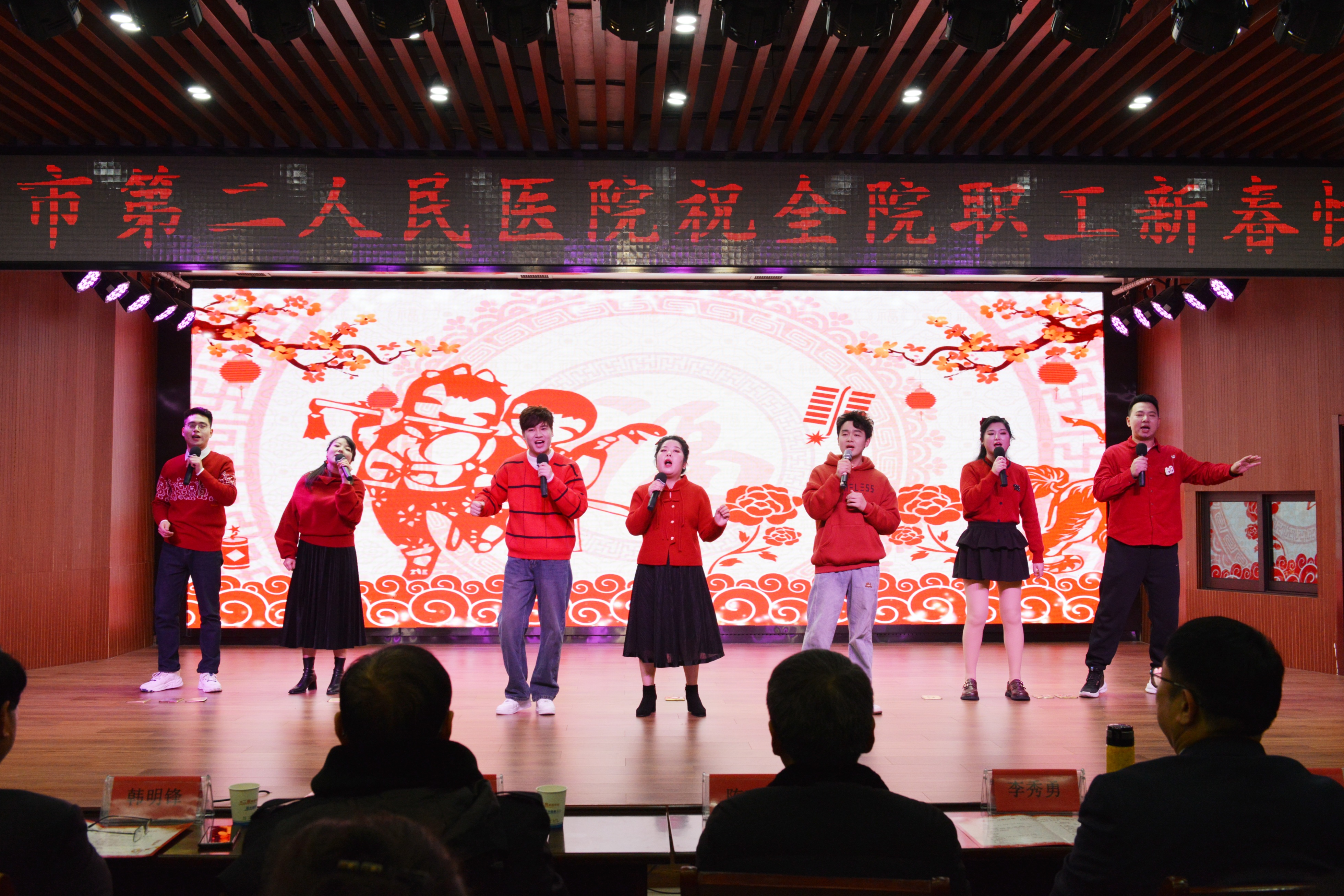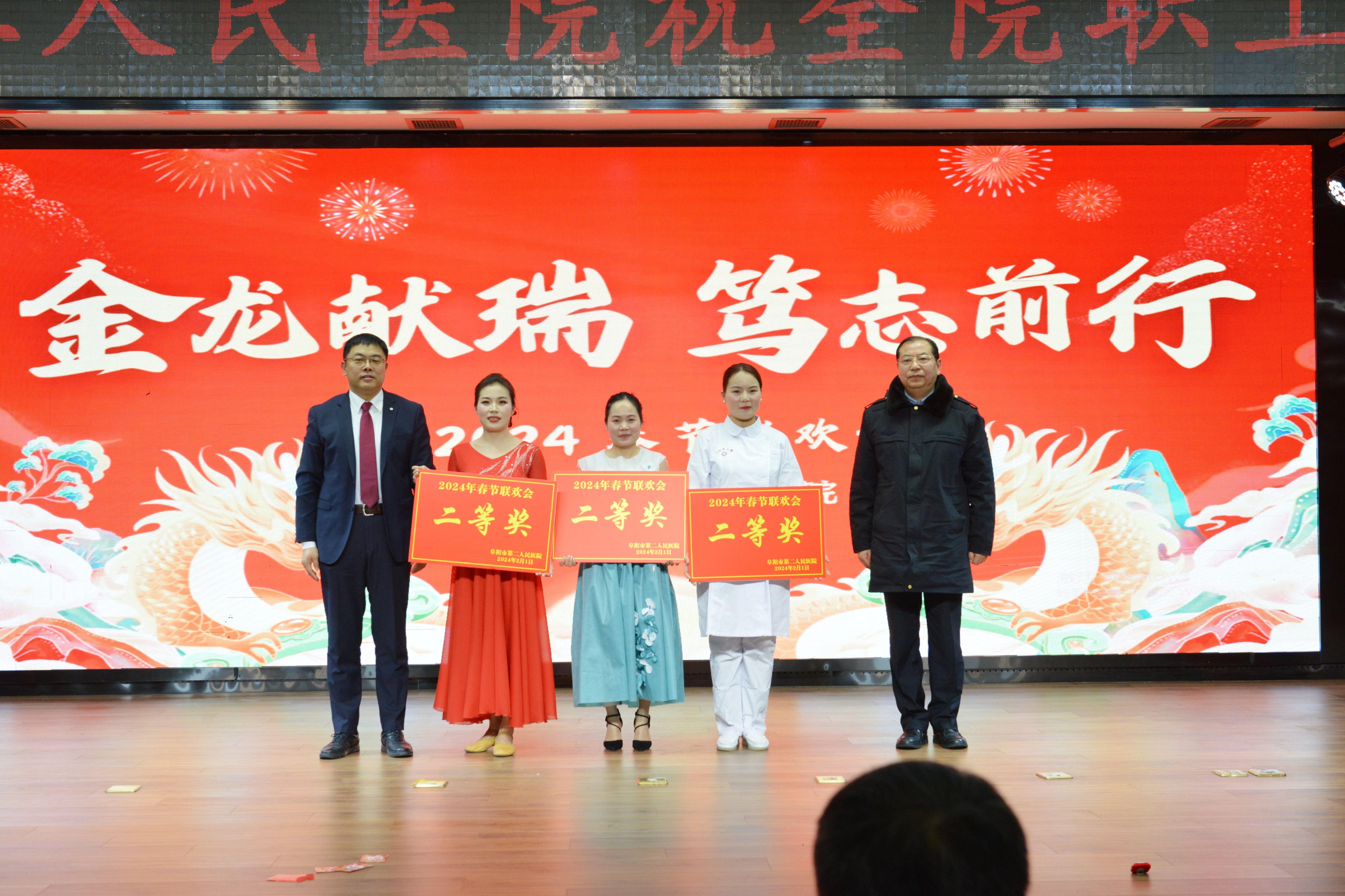 值此2024年春节来临之际,2月1日,阜阳市第二人民医院在2024年迎春联欢会在热情似火的氛围中拉开帷幕。市卫生健康委党组成员、副主任陈建利,市市场监督管理局二级调研员吴军等领导出席,院领导班子成员及全院干部职工代表约200余人参加。