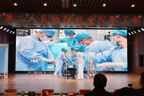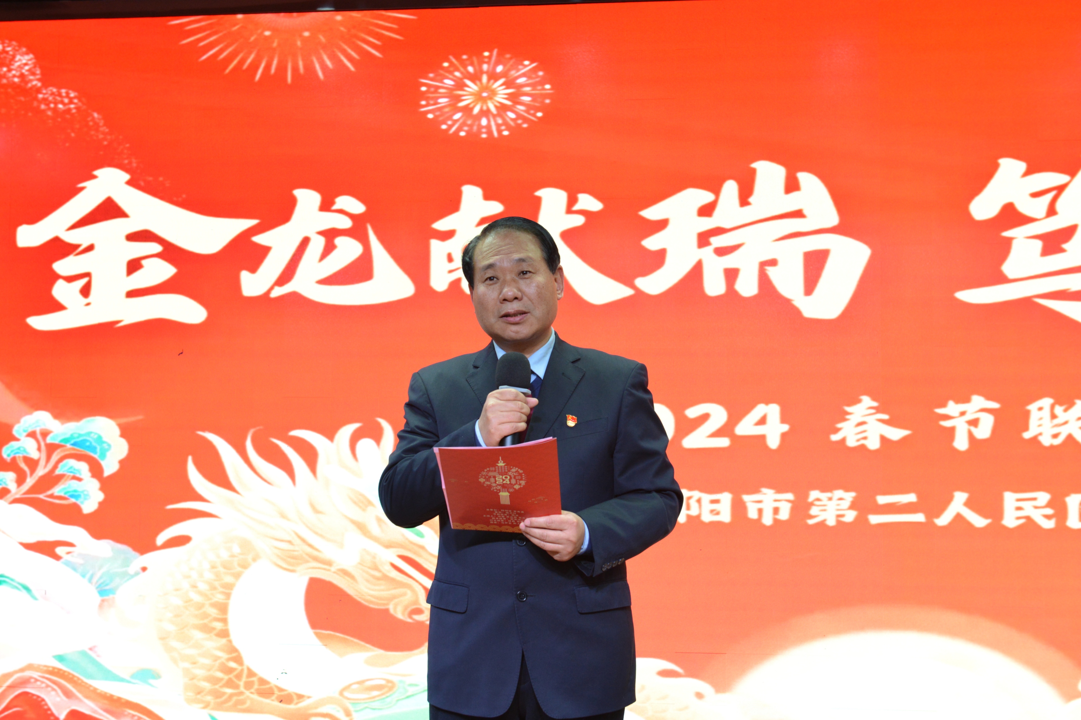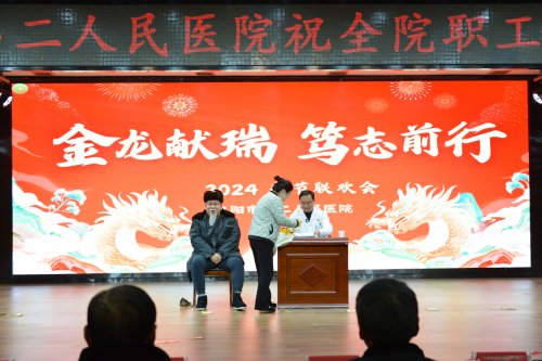 市第二人民医院党委副书记、院长韩明锋致新春贺词,他向一年来辛勤工作的全院干部职工,以及所有关心、支持医院建设发展的各级领导、社会各界致以诚挚的问候及新春的祝福。韩明锋表示,2024年,全院上下将锚定目标、鼓足干劲,抢抓机遇、团结奋进,加快建设安徽省公共卫生临床中心(阜阳),推动医院高质量发展,为建设优质均衡的区域性医疗卫生强市和现代化美好阜阳贡献更多力量。