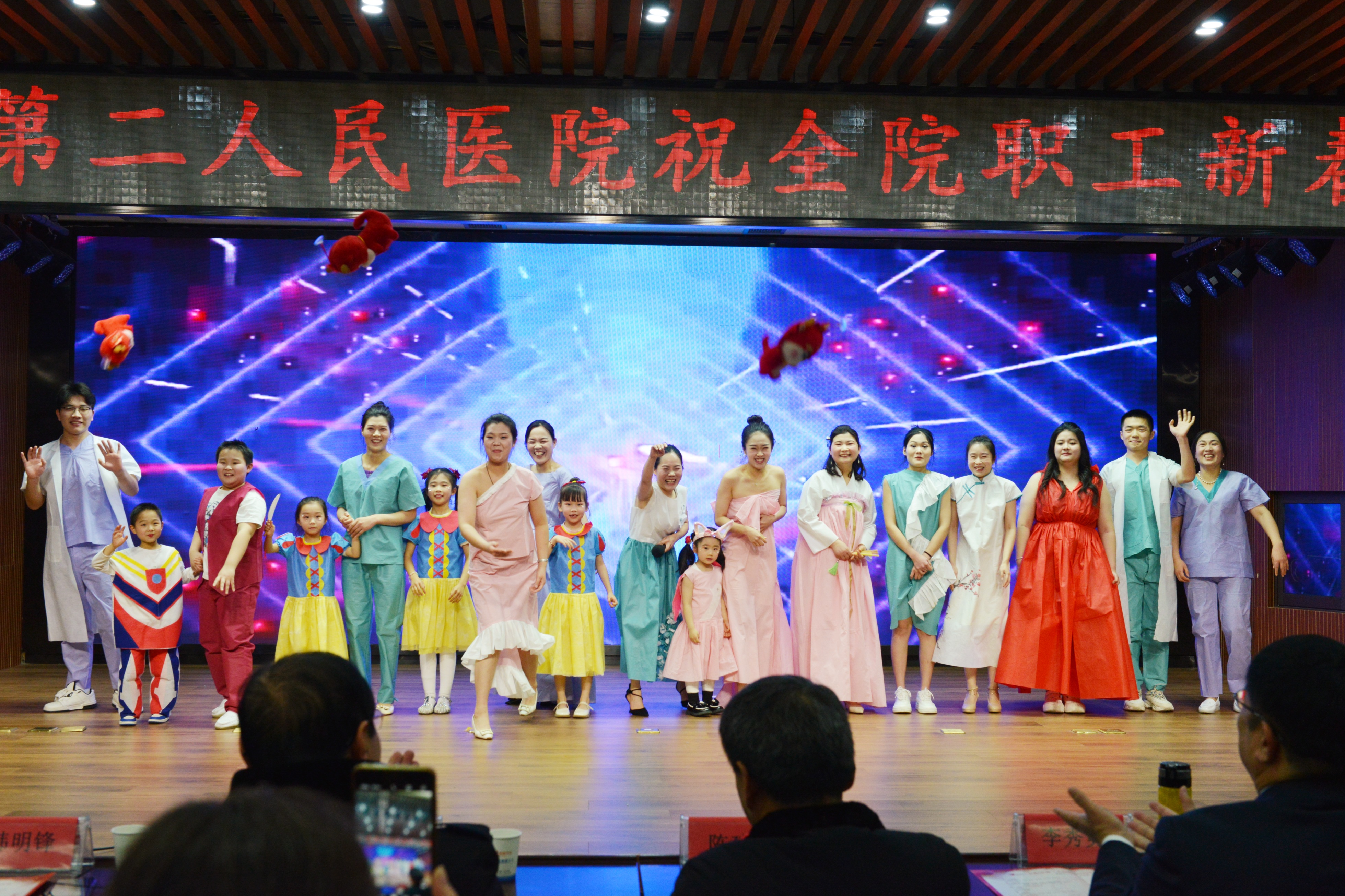 优美的歌舞表演、幽默的小品相声等艺术形式,抒发着二院人对党、对祖国的热爱之情和对美好未来的憧憬。
