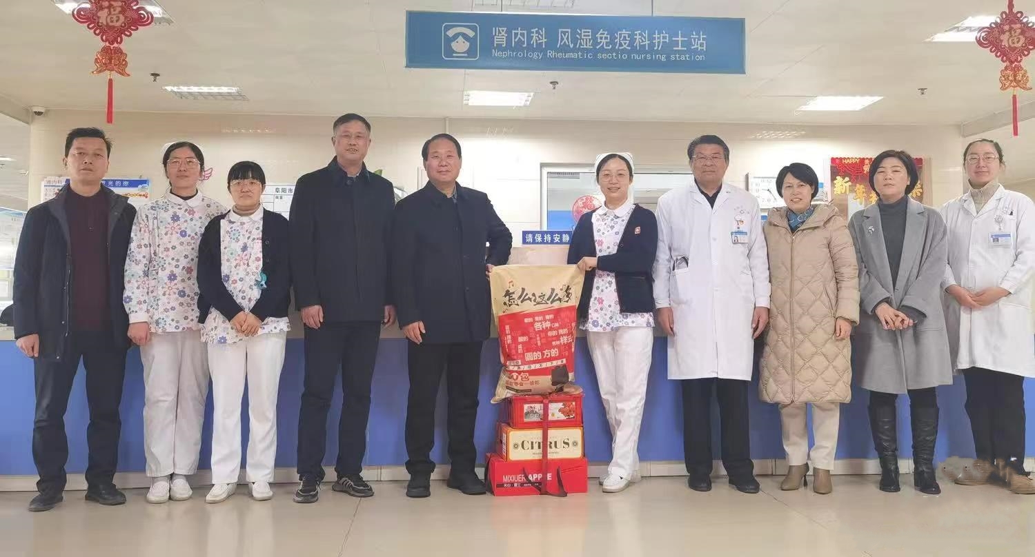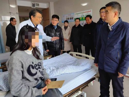 当天上午,阜阳市卫生健康委员会党组成员、副主任、市疾病预防控制局局长陈建利,市卫生健康委员会党组成员、驻市卫生健康委纪检组长徐浩一行,看望慰问该科室的贫困患者及在岗医护人员,为患者送上新春的祝福红包和慰问品。随后,院党委书记韩明锋、党委副书记、院长李秀勇也来到科室关怀慰问了住院患者和值班人员。