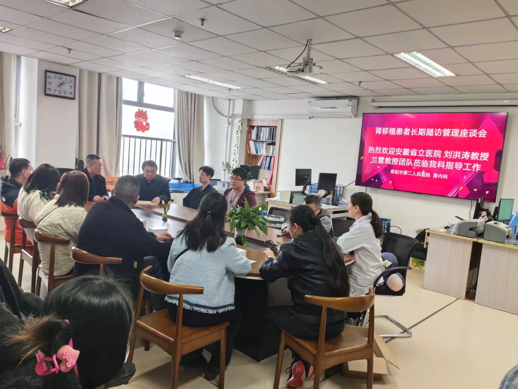 3月24日,阜阳市第二人民医院肾脏内科举行肾移植患教会,邀请了中国科学技术大学附属第一医院(安徽省立医院)刘洪涛、兰雷教授及其团队。肾脏内科主任李龙海介绍了全市慢性肾脏病的透析现状,越来越的透析患者期望肾移植。