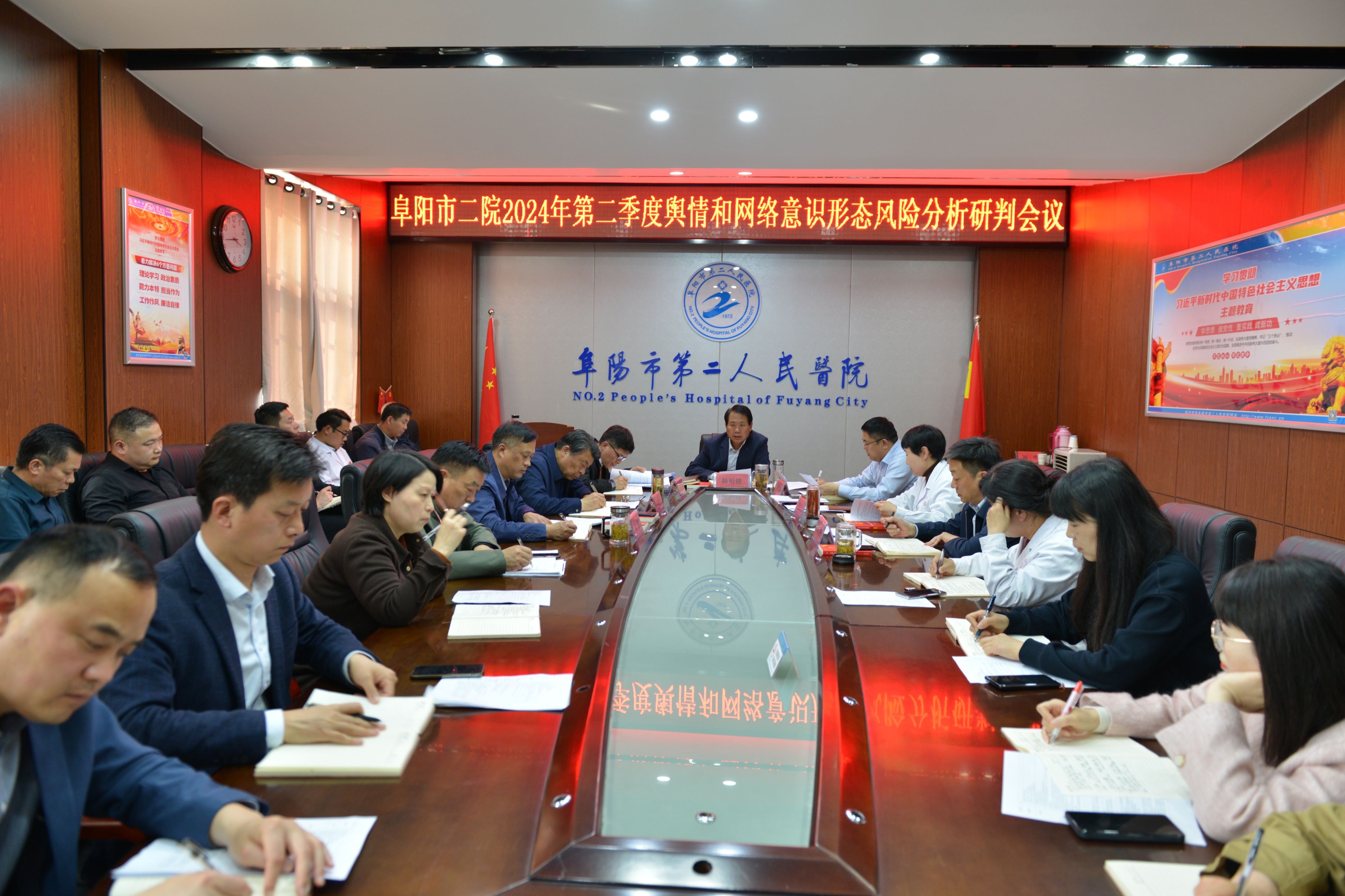 为进一步做好网络舆情排查化解工作,提升全院网络舆情和网络意识形态风险研判处置水平,4月8日,阜阳市第二人民医院组织召开2024年第二季度舆情和网络意识形态风险分析研判会议,医院领导班子成员、各职能科室负责人参加会议。