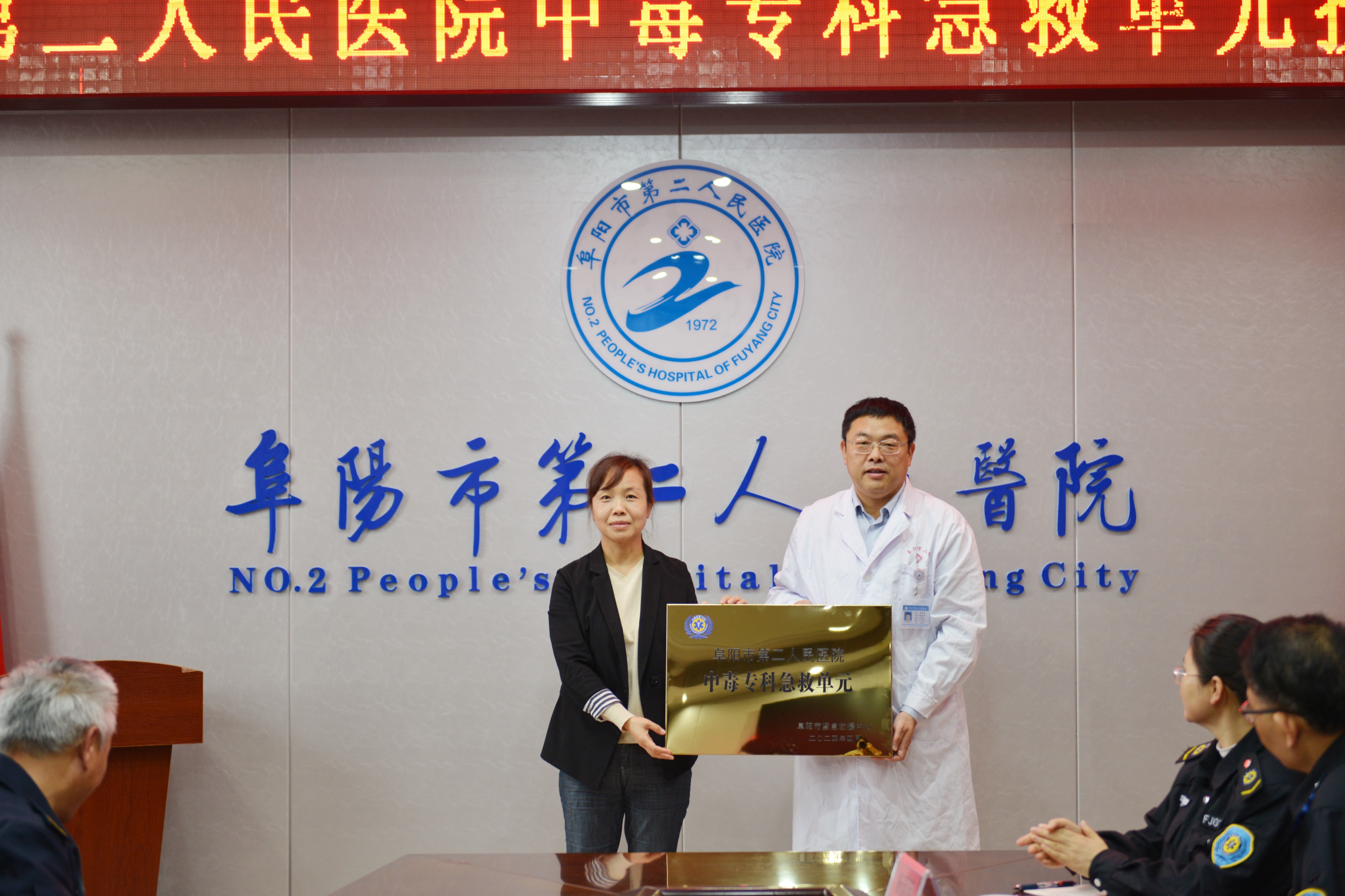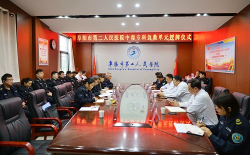 4月30日,阜阳市第二人民医院举行中毒专科急救单元授牌仪式,市卫生健康委党组成员、副主任陈建利,市第二人民医院党委副书记、院长李秀勇,党委委员、副院长麻宏亮出席,急诊医学科、医务科负责人,120急救分站全体医务人员参加。中毒专科急救单元授牌标志着市第二人民医院在中毒救治方面再上一个新阶段。