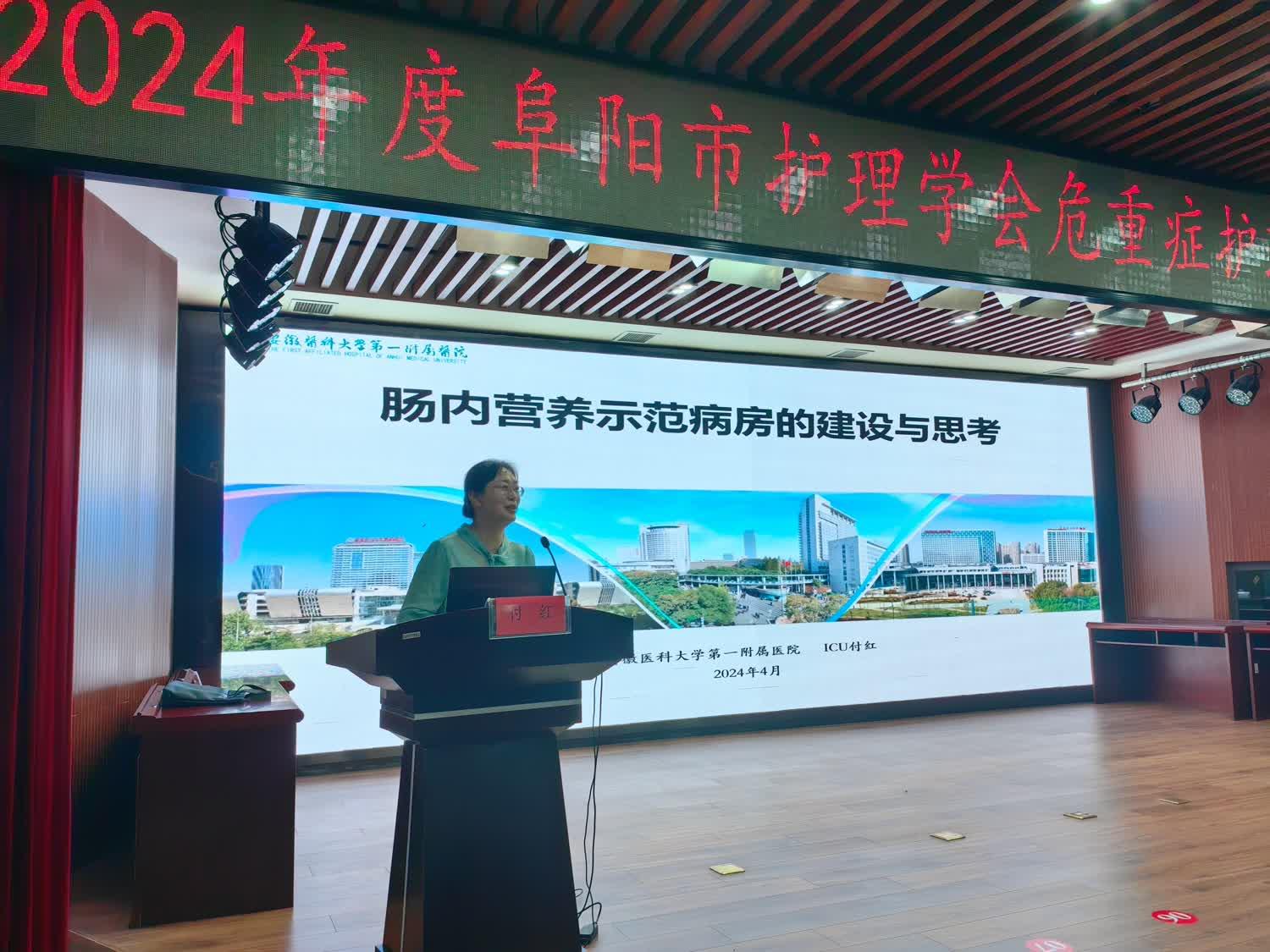 此次活动特别邀请安徽省护理学会危重症护理专业委员会主任委员付红授课。付红以“肠内营养示范病房的建设与思考”为题,从重症患者营养概述、肠内营养置管技能考核项目、肠内营养示范病房创建介绍等方面为大家做了详细的阐述。强调了营养治疗过程中规范化管理的重要性,提高了大家对危重患者肠内营养治疗护理规范化建设的认识。