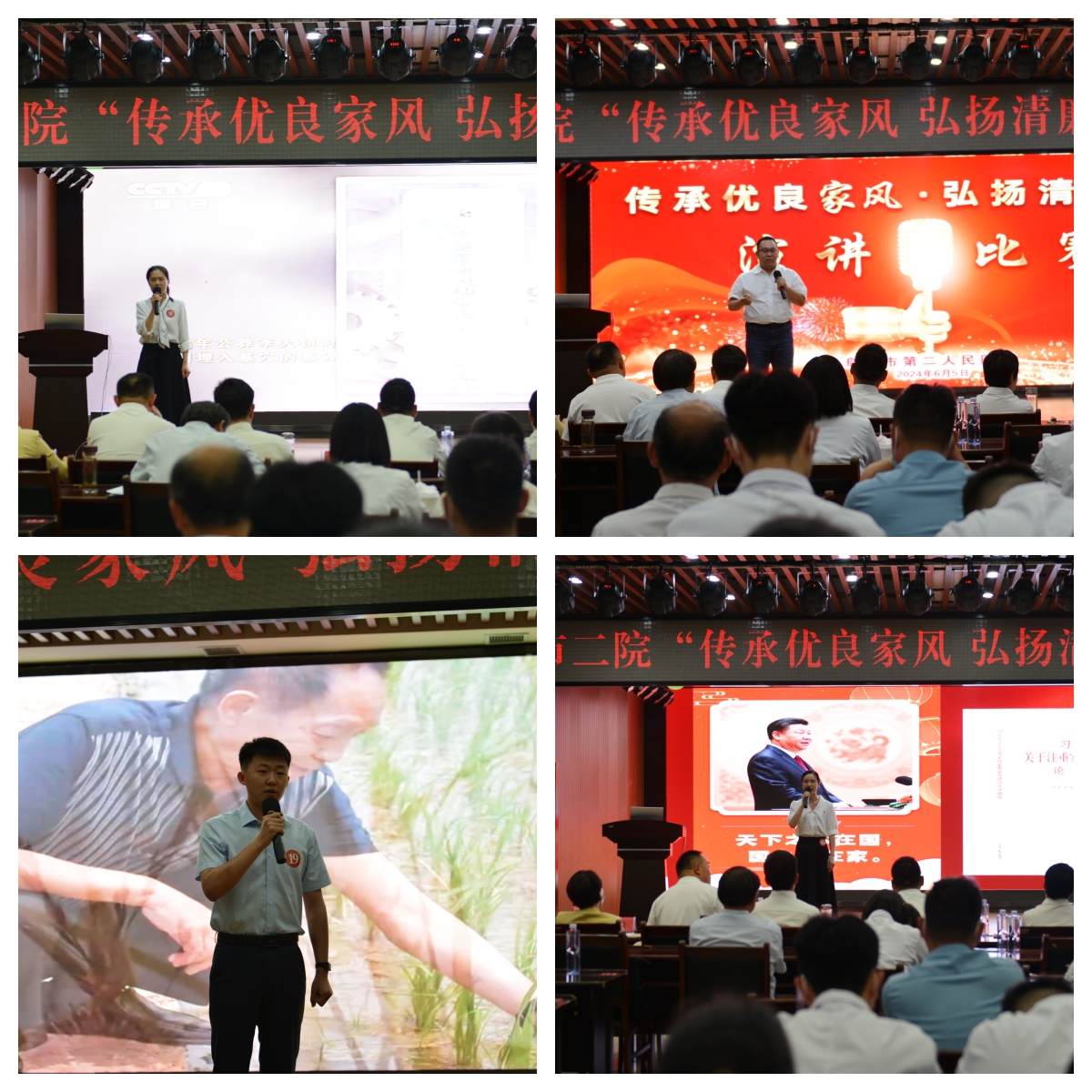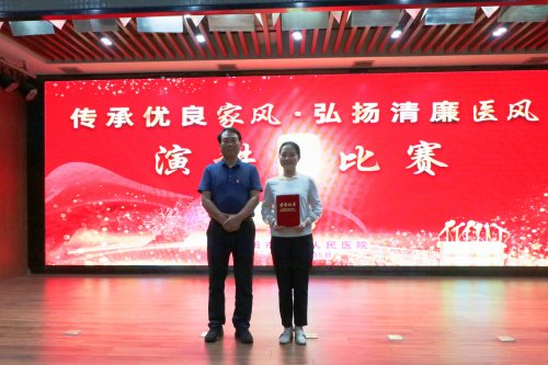院党委委员李龙海对选手们精彩的演讲进行点评。他指出,选手们的事例生动感人,巧妙地将传统家风中的廉洁理念和智慧融入到弘扬清廉医风之中,将家风的传承作为培育清廉医风的坚实基石,展示了二院人的良好精神风貌。希望大家积极传承优良家风,弘扬清廉医风,转作风、正行风、强医风、树新风,真正做到家风优、行风正、医风清、院风明,推动构建风清气正的良好政治生态。