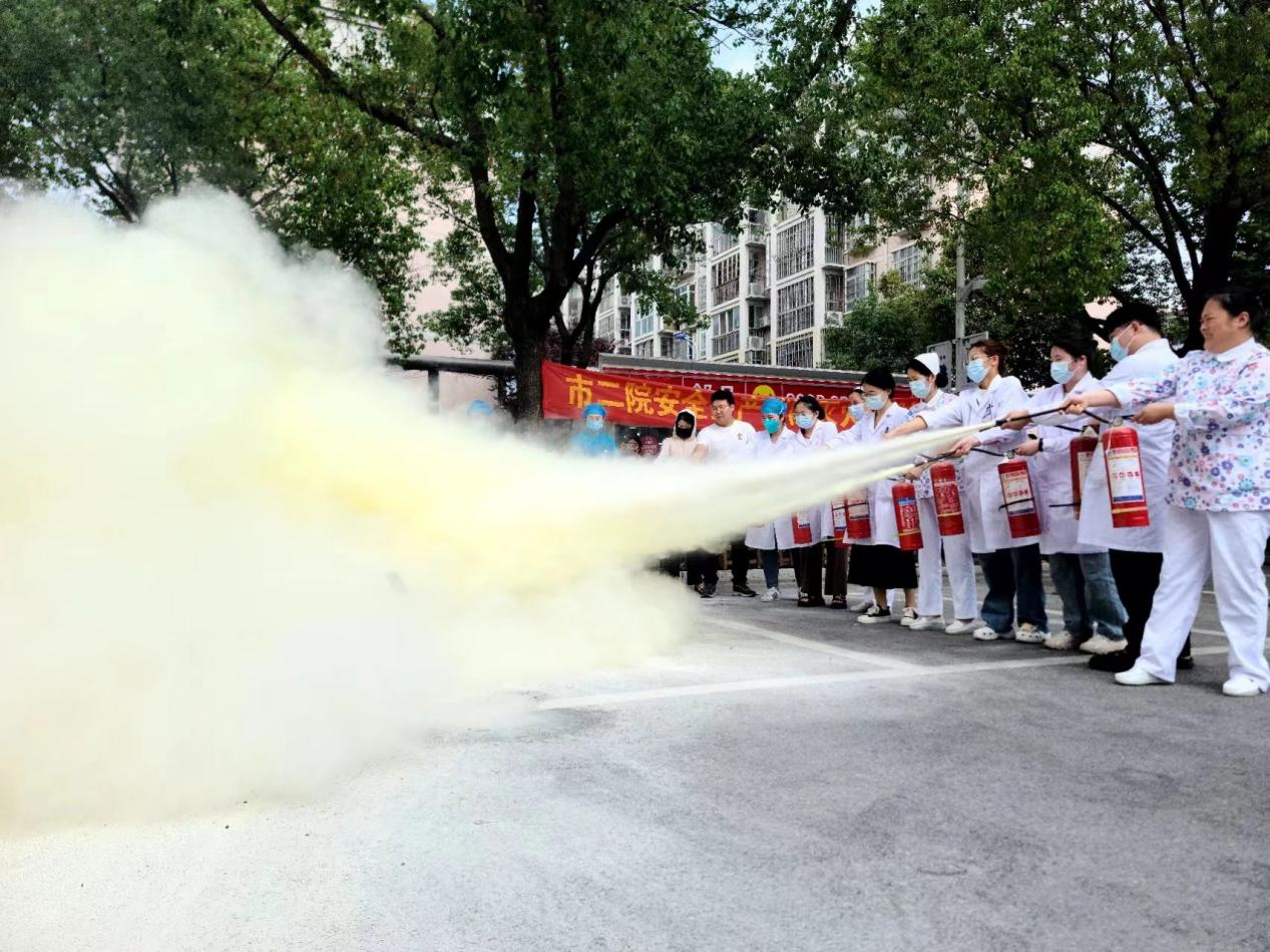 为积极响应2024年安全生产月“人人讲安全,个个会应急——畅通生命通道”的消防安全主题,增强全院医护人员消防安全意识,提高他们正确使用消防器材应对突发火灾的处置及逃生能力。6月20日上午,阜阳市第二人民医院保卫科、安全生产办公室联合组织开展了消防灭火疏散实战演练,党委副书记、院长李秀勇,副院长刘虎参加了本次消防实战演练,保卫科副科长李勇智担任本次演练的教官,全院各临床科室职工和安全员共计400余人参加了本次实战演练。