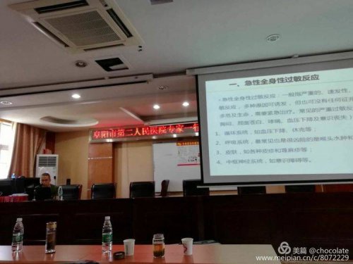 7月2日,阜阳市第二人民医院急诊科医护人员一行8人在科主任、副主任医师鲍华西的带领下,来到临泉老集卫生院开展急诊与急救知识交流讲座活动,针对地区与季节特点,讲解胸痛、中毒、溺水抢救与静脉注射相关知识,受到卫生院医生们的热烈欢迎。