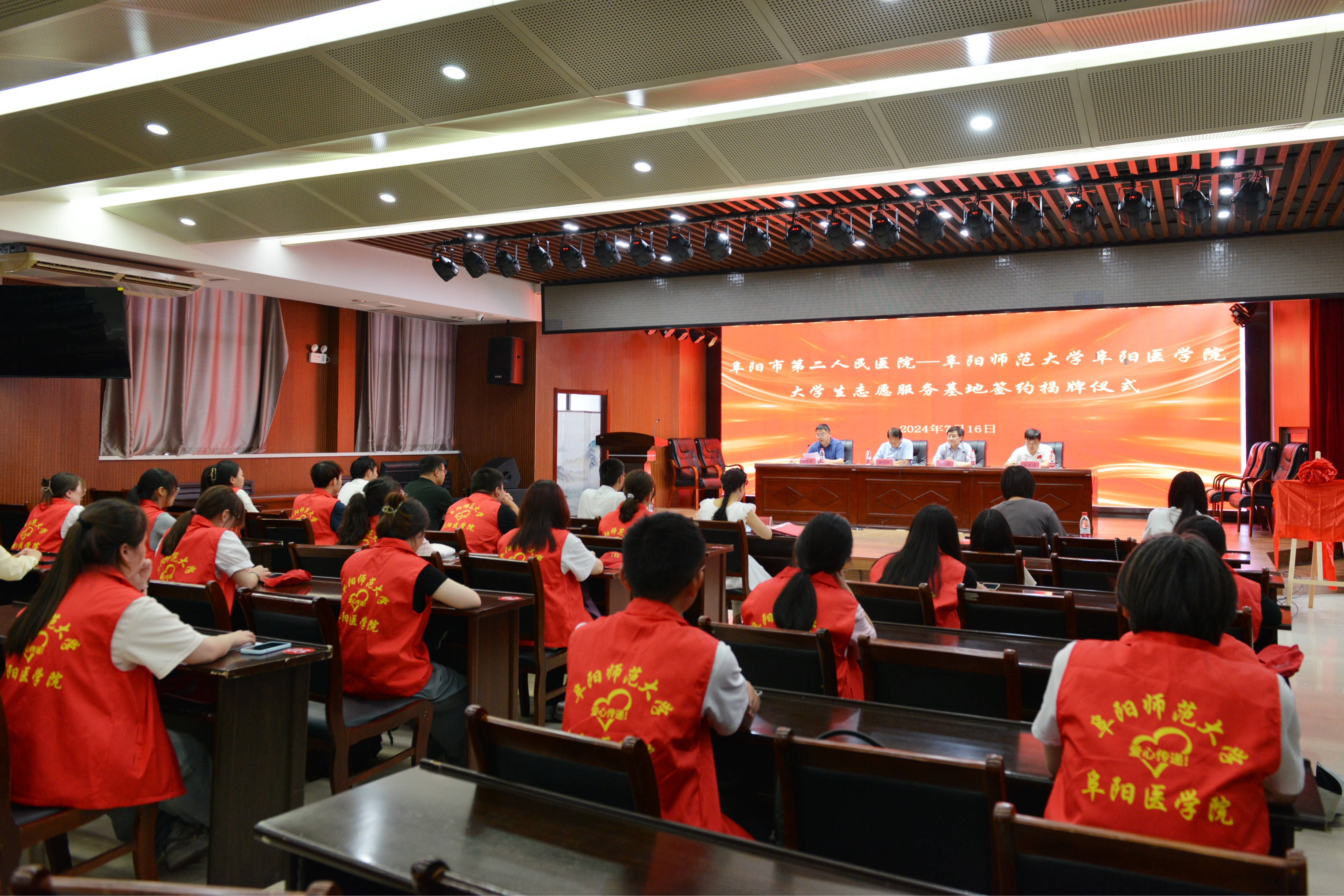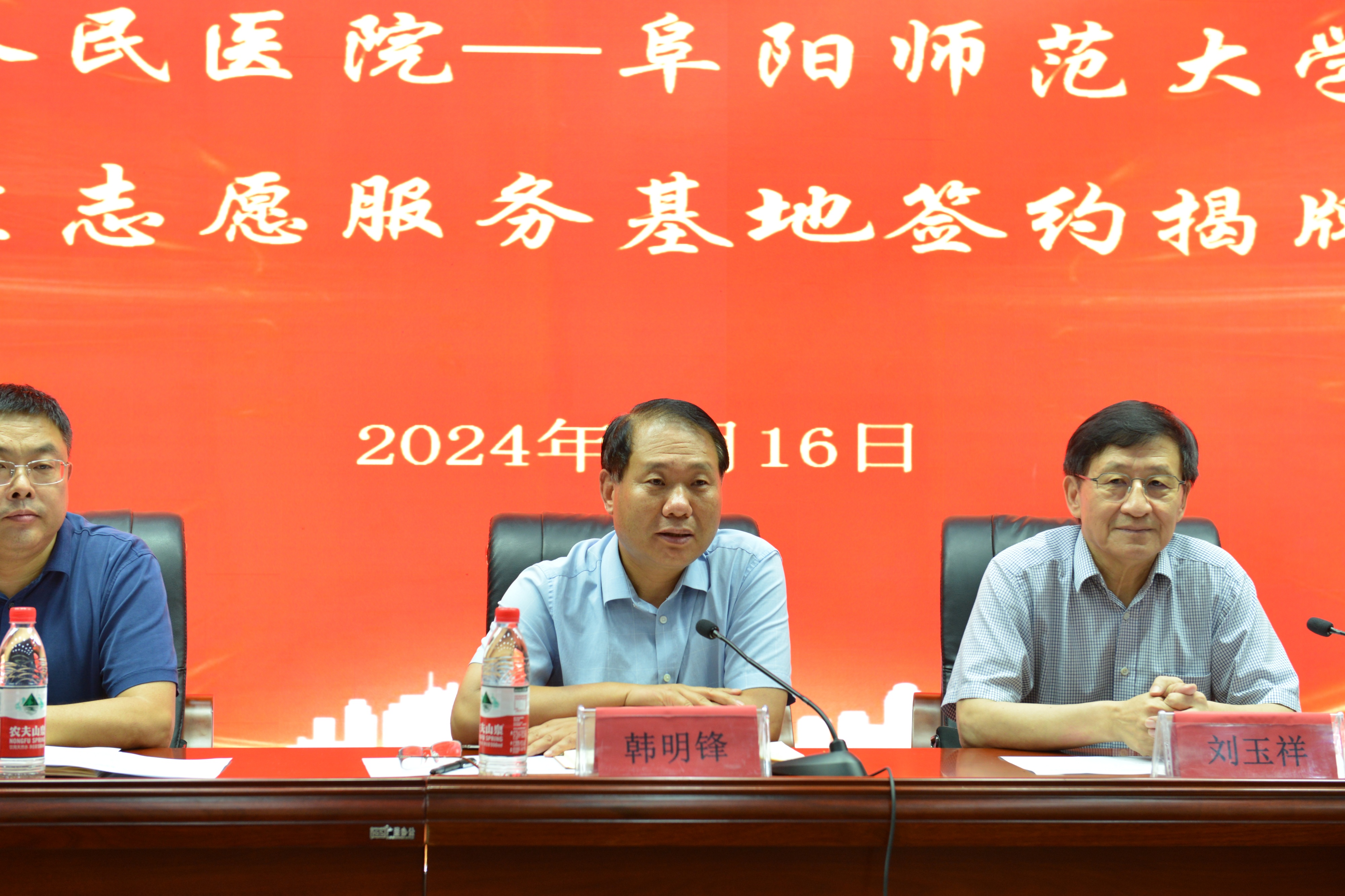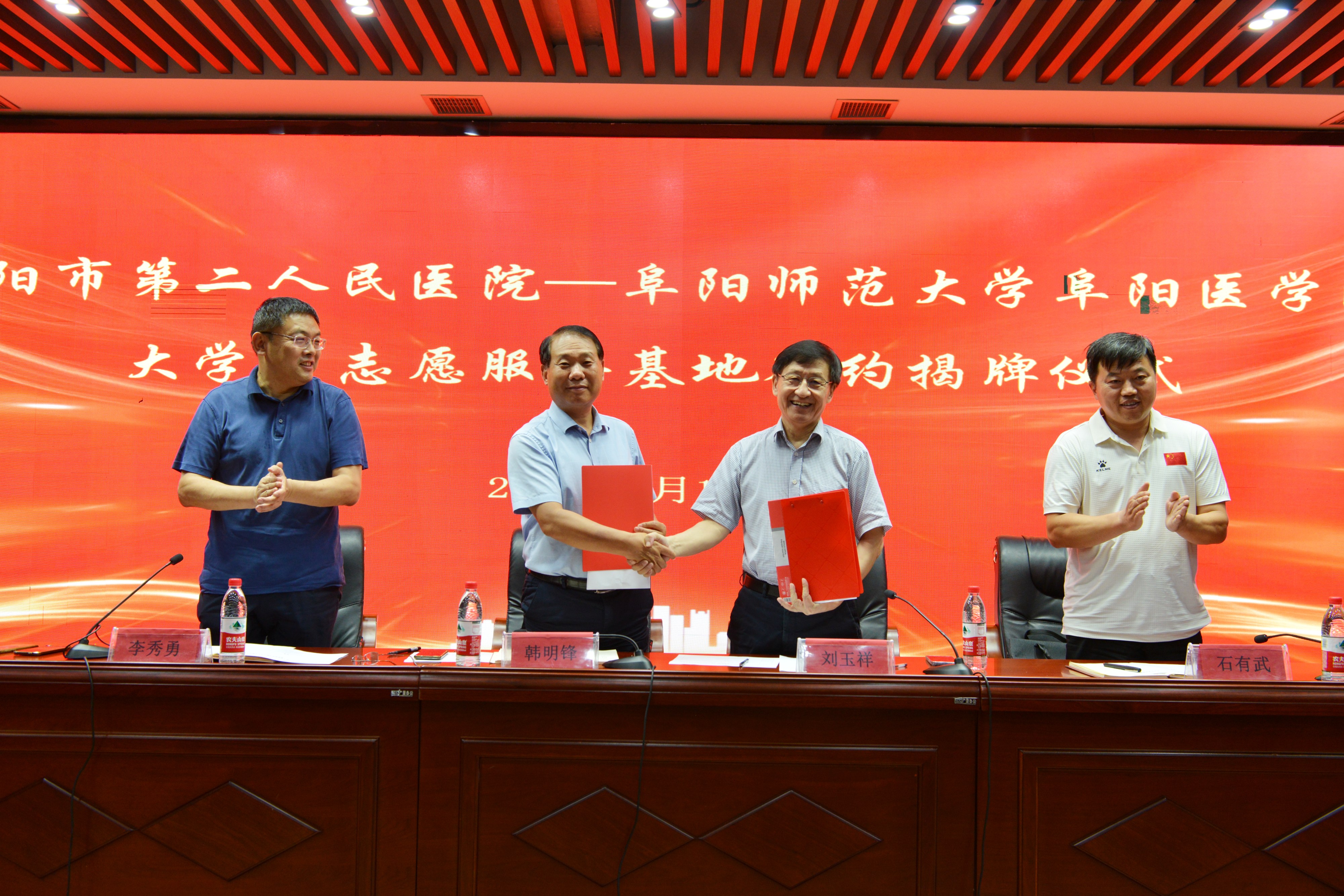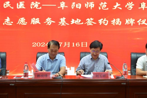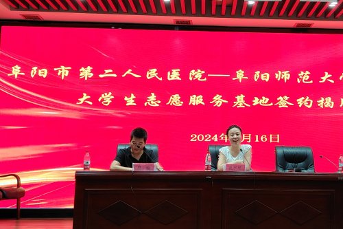 为进一步弘扬奉献、友爱、互助、进步的志愿服务精神,引导广大学生用青春力量奉献社会、用实际行动服务社会。7月16日下午,阜阳师范大学医学院与阜阳市第二人民医院举行“大学生志愿服务基地”揭牌仪式。市第二人民医院党委书记韩明锋,党委副书记、院长李秀勇,阜阳师范大学医学院院长刘玉祥、党委书记石有武出席,市第二人民医院社会义工部副主任孔平平及老师代表、大学生志愿者代表出席了揭牌仪式,仪式由李秀勇主持。