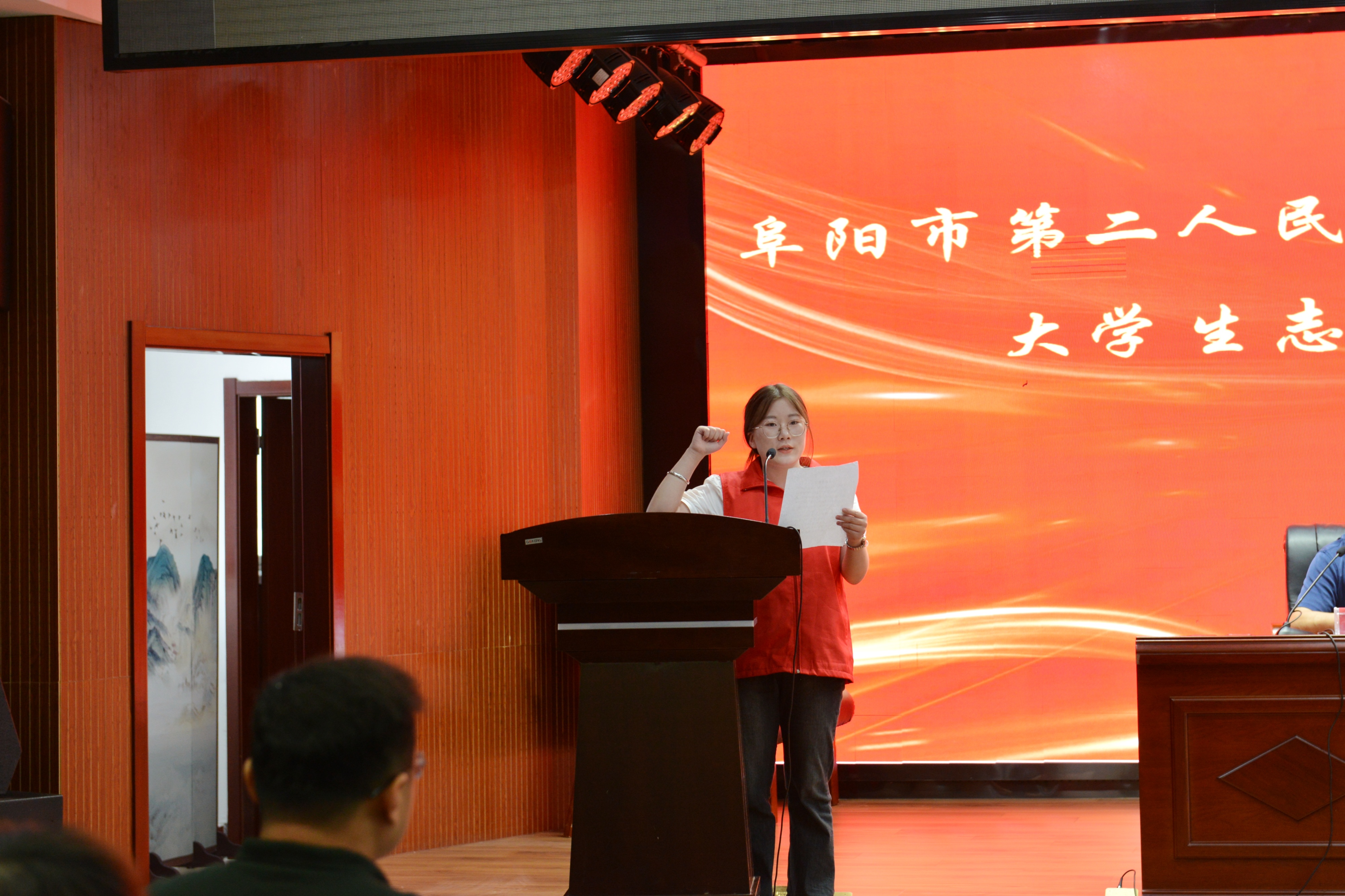 阜阳师范大学医学院学生志愿者代表张兴月宣读志愿服务誓词