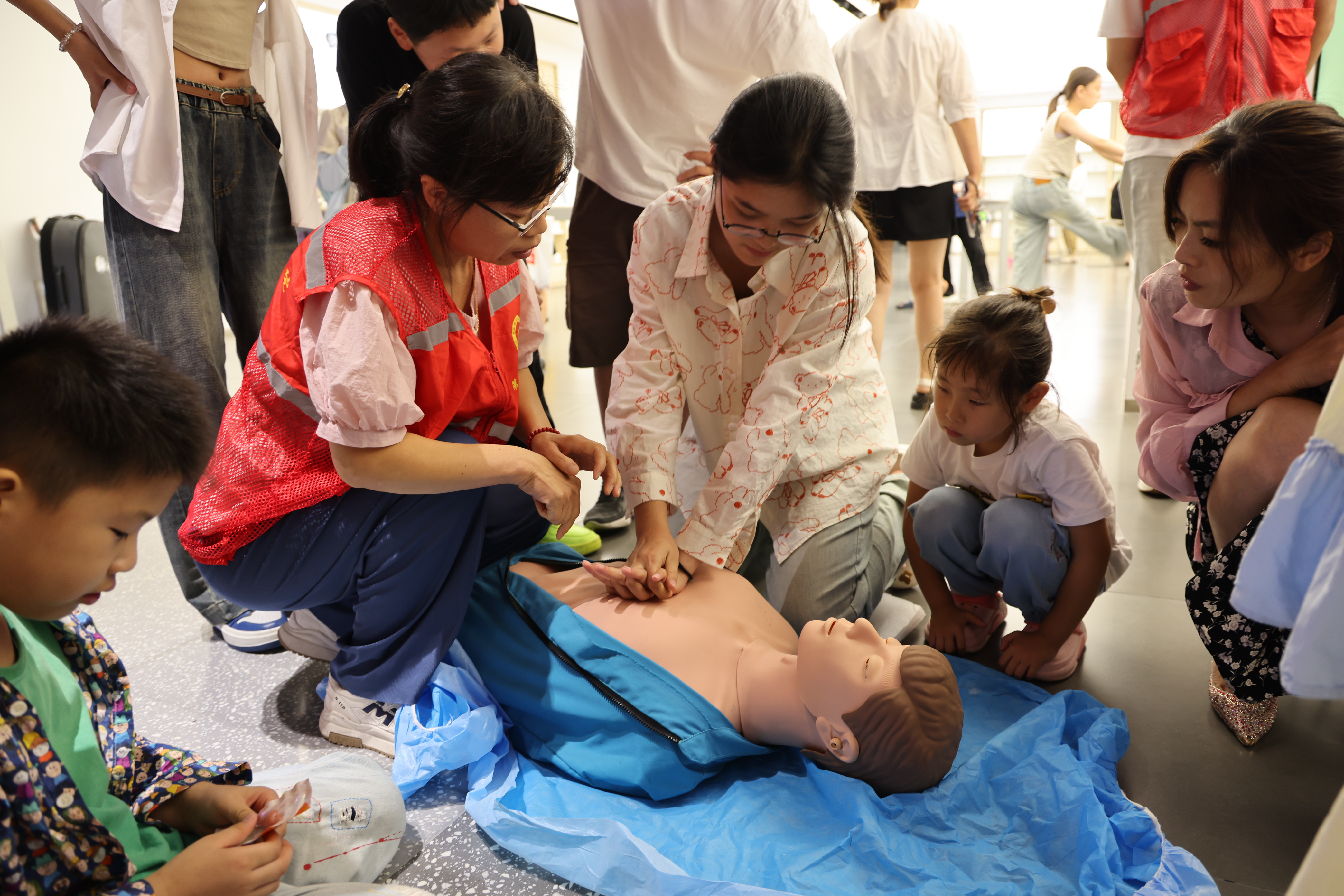 活动现场,“微光”志愿者们向广大市民传播心肺复苏、海姆立克急救法的急救技能,生动而详实的讲解让广大市民朋友对急救的基本原理、操作流程及注意事项有了更为清晰的认识,在场市民们也积极参与,在志愿者的指导下,亲自体验心肺复苏、海姆立克急救法的急救技能全过程。