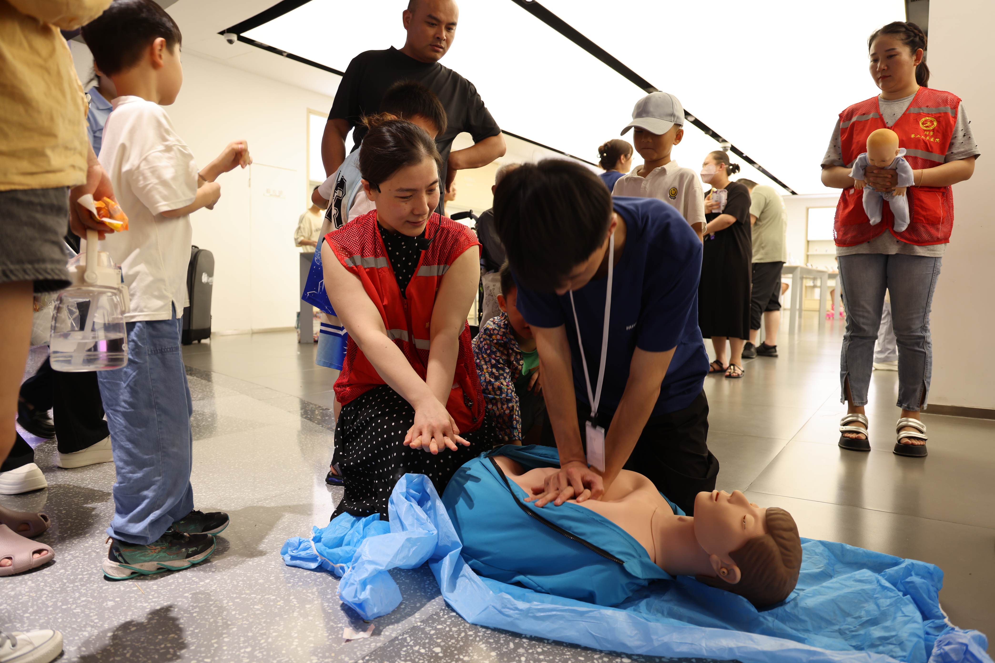 8月6日晚,阜阳市第二人民医院“微光”志愿者在阜阳时代广场一楼举办了第四期急救科普公益活动。