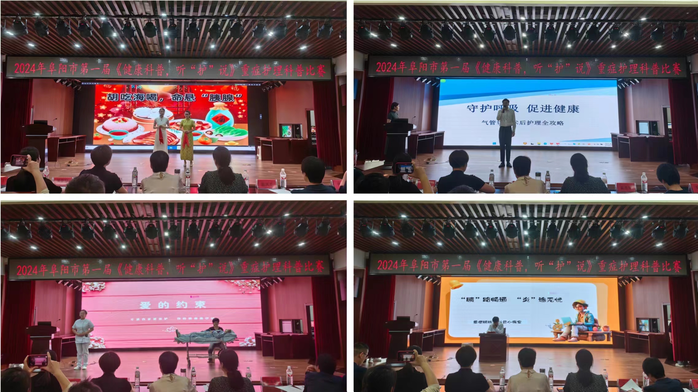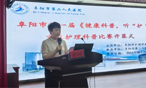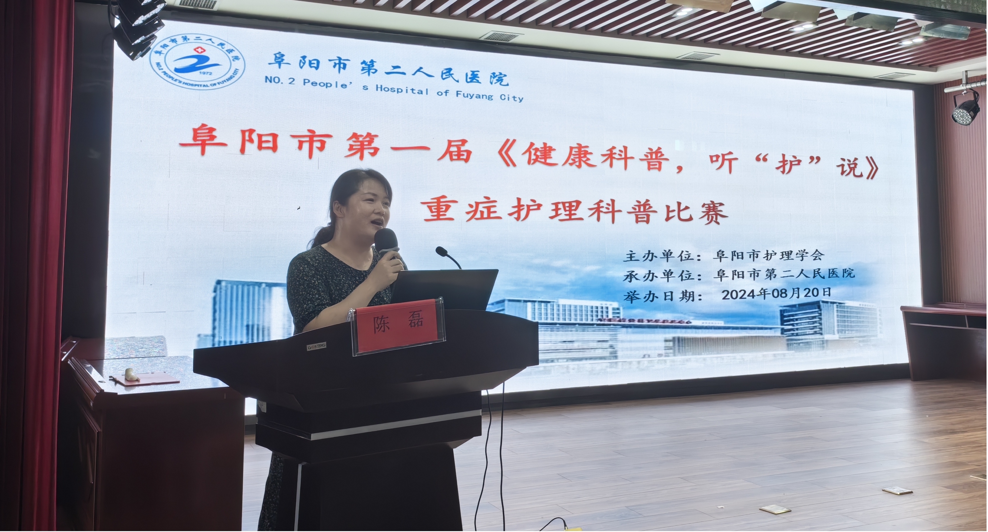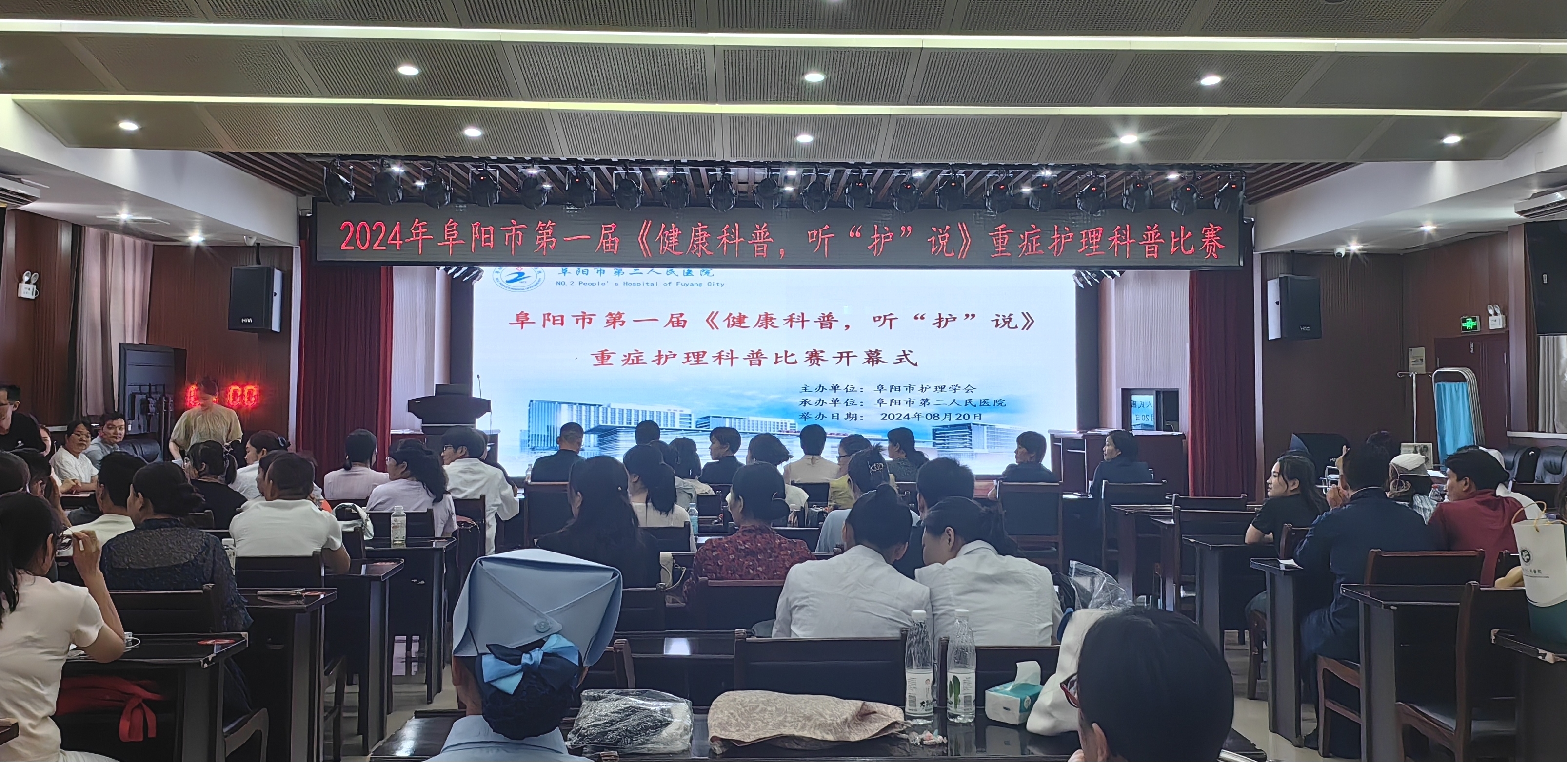 为积极响应健康中国行动,推动健康中国建设,提升重症学科的护理水平,加强全市危重症护理人才队伍建设,为患者提供更加安全、专业、优质的护理服务,8月20日,由阜阳市护理学会危重症护理专业委员会主办的阜阳市首届《健康科普,听“护”说》重症护理科普比赛在阜阳市第二人民医院举办。