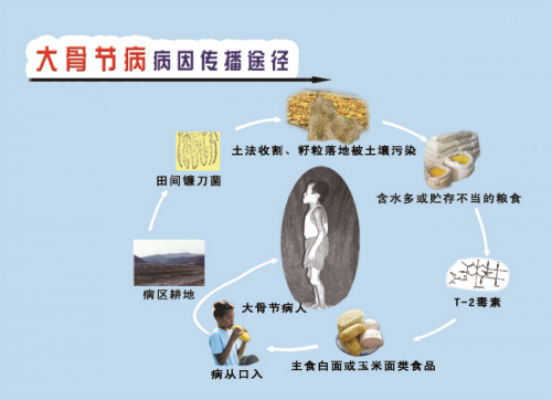 三、大骨节病的发病原因是什么?病因至今不完全清楚。在流行区,土壤、粮食和人发中偏低的硒含量与病情有非常明显的负相关。水中腐殖酸总量和腐殖酸(-OH)与病情有非常明显的正相关。大骨节病区饮水中微量元素不足、过剩和失衡可能是引起营养不良性改变的因素。此外,长期食用真菌(如镰刀菌)污染的粮食、饮用水被有毒物质污染、环境潮湿等也可能有关。