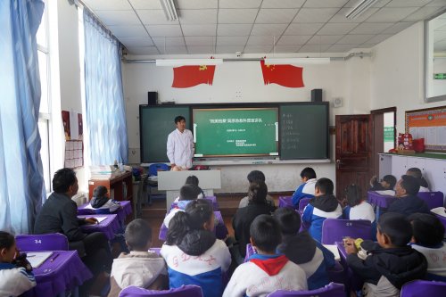 在教室里,医务人员向师生们传播心肺复苏、海姆立克急救法等易发危险的急救技能,结合日常生活中会发生的情况进行讲解。“如果在学校有同学吃东西或者玩玩具时突然不能说话,不能咳嗽,不能呼吸,双手不自觉的掐着自己的脖子,表情十分痛苦,我们应该怎么做呢?”
