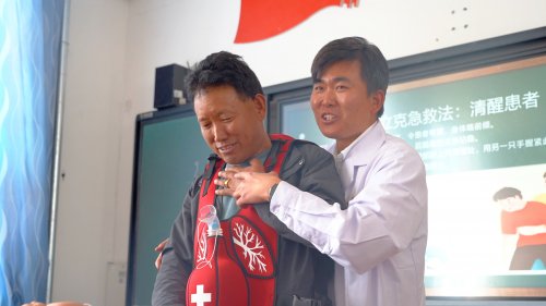 2024年6月,阜阳市第二人民医院急诊科医生韩希鹏被选派参加援藏工作,进入山南市措美县以来,为改善当地居民对急救知识、常见疾病认识的匮乏,并提升当地居民应急救护能力,韩希鹏联合当地藏族医务人员成立“皖美格桑”高原急救科普队,深入藏区开展急救科普工作。