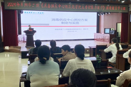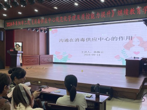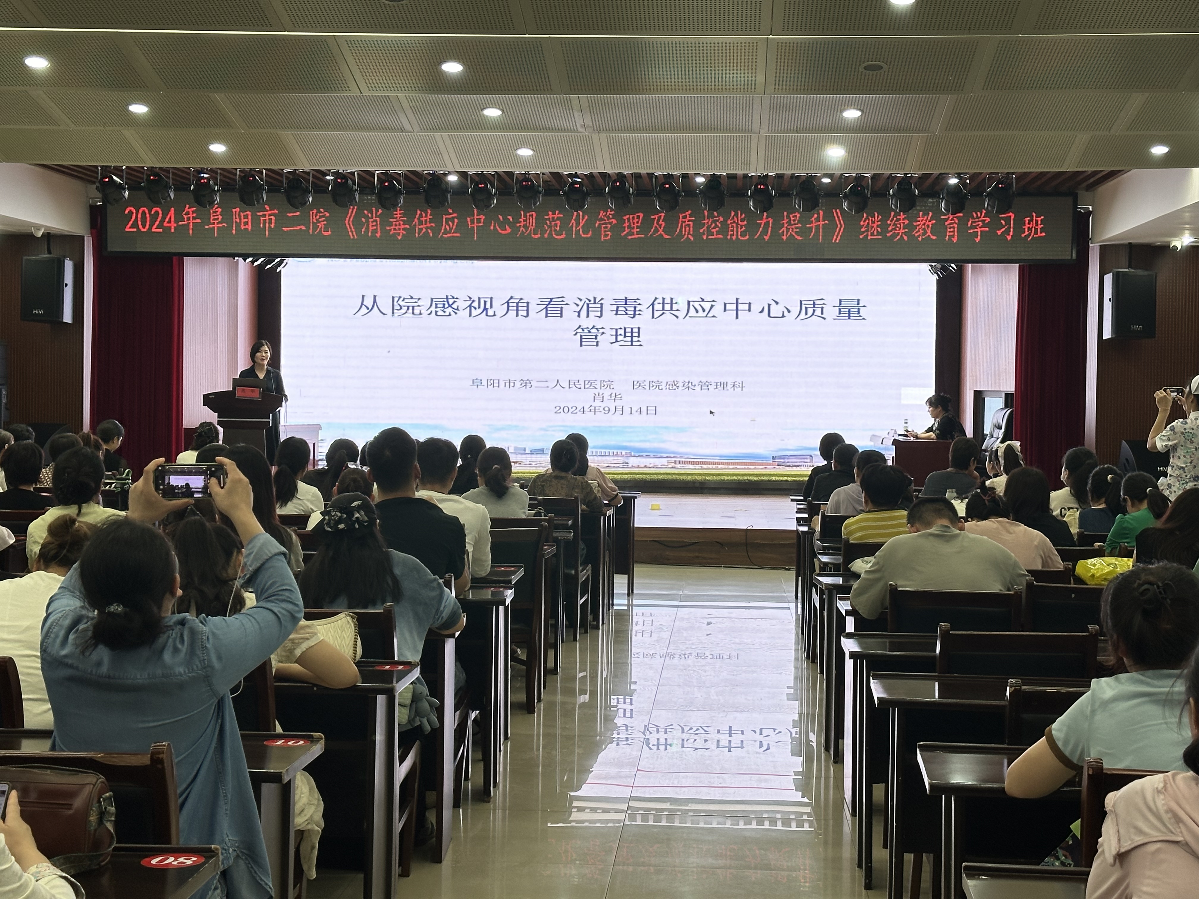 为进一步推动阜阳市消毒供应专业发展,提高医院消毒供应中心质量及管理水平,促进经验交流,保障医疗质量与安全,《消毒供应中心规范化管理及质控能力提升》学习班于2024年9月14日在阜阳市第二人民医院成功举办。来自全市医疗卫生机构的消毒供应中心护士长、护理骨干及相关专业人员共200余人参加此次学习班。