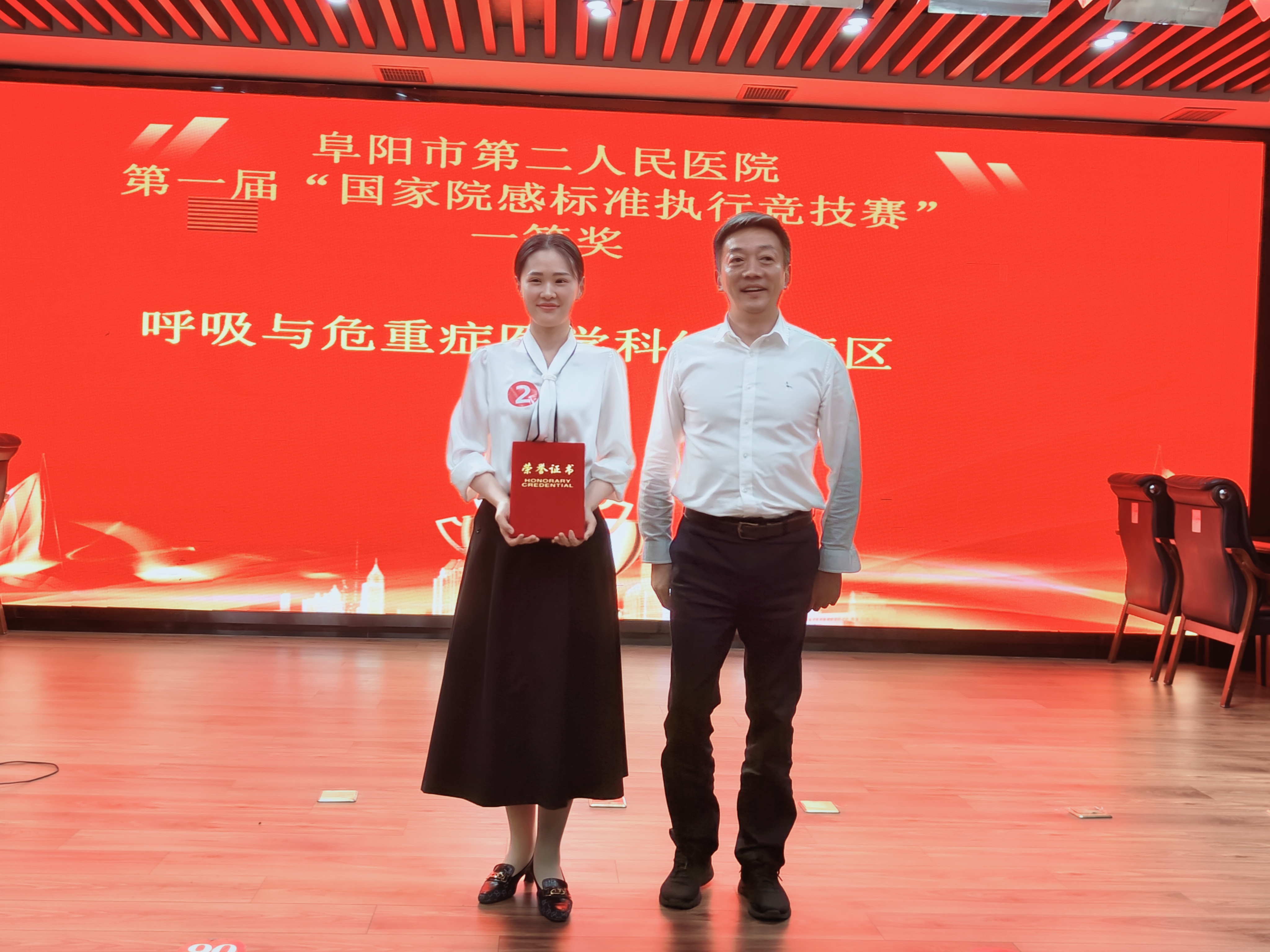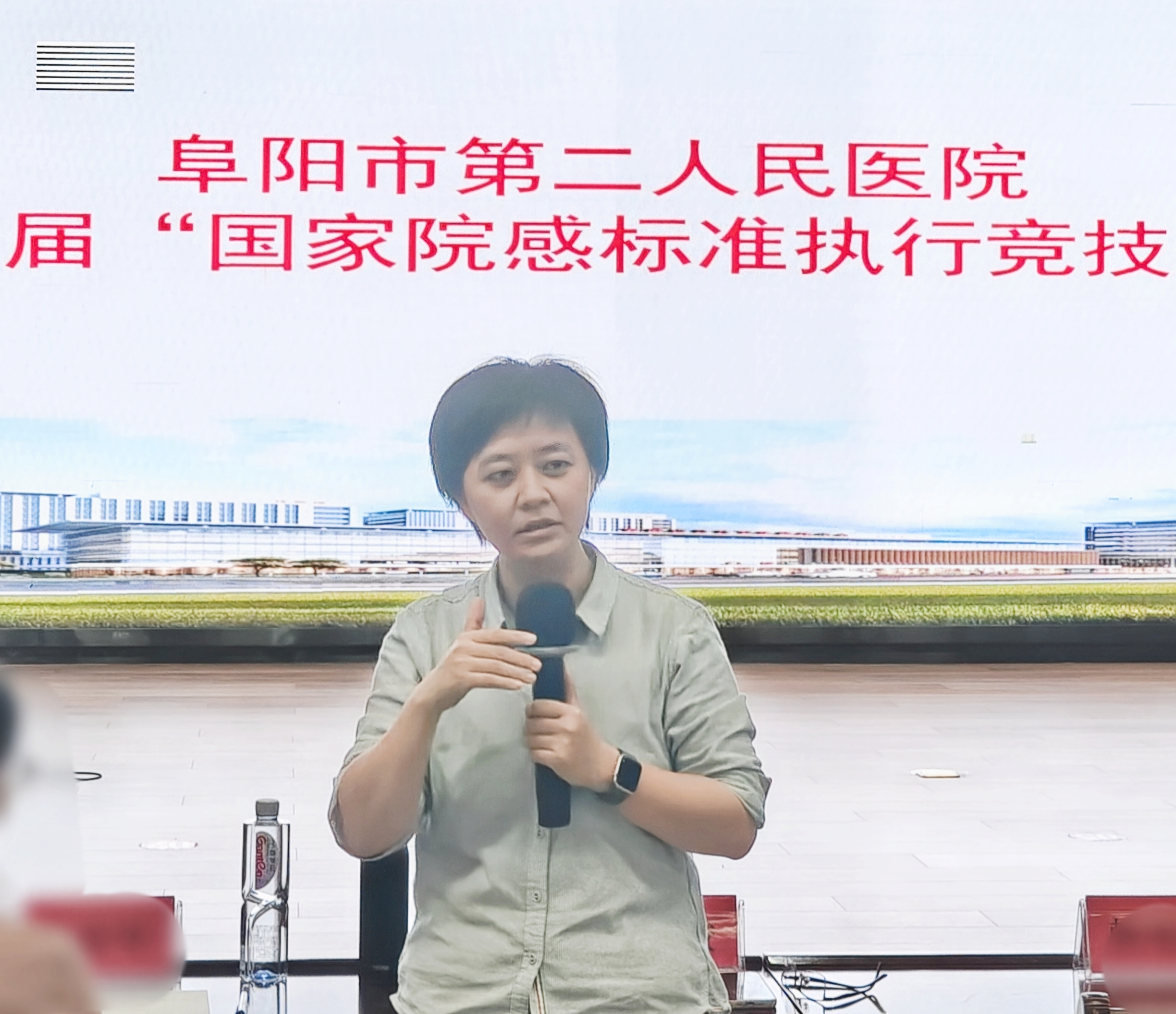 本次比赛由安徽省医院感染管理质控中心主任殷俊,阜阳市医院感染管理质控中心主任沈诗华,阜阳市第二人民医院党委委员、副院长麻宏亮,护理部主任黄敏,医务科科长王建,评审评价办主任周晓平,医院感染管理科科长肖华担任评委,由医院感染管理科副科长黄继峥主持。