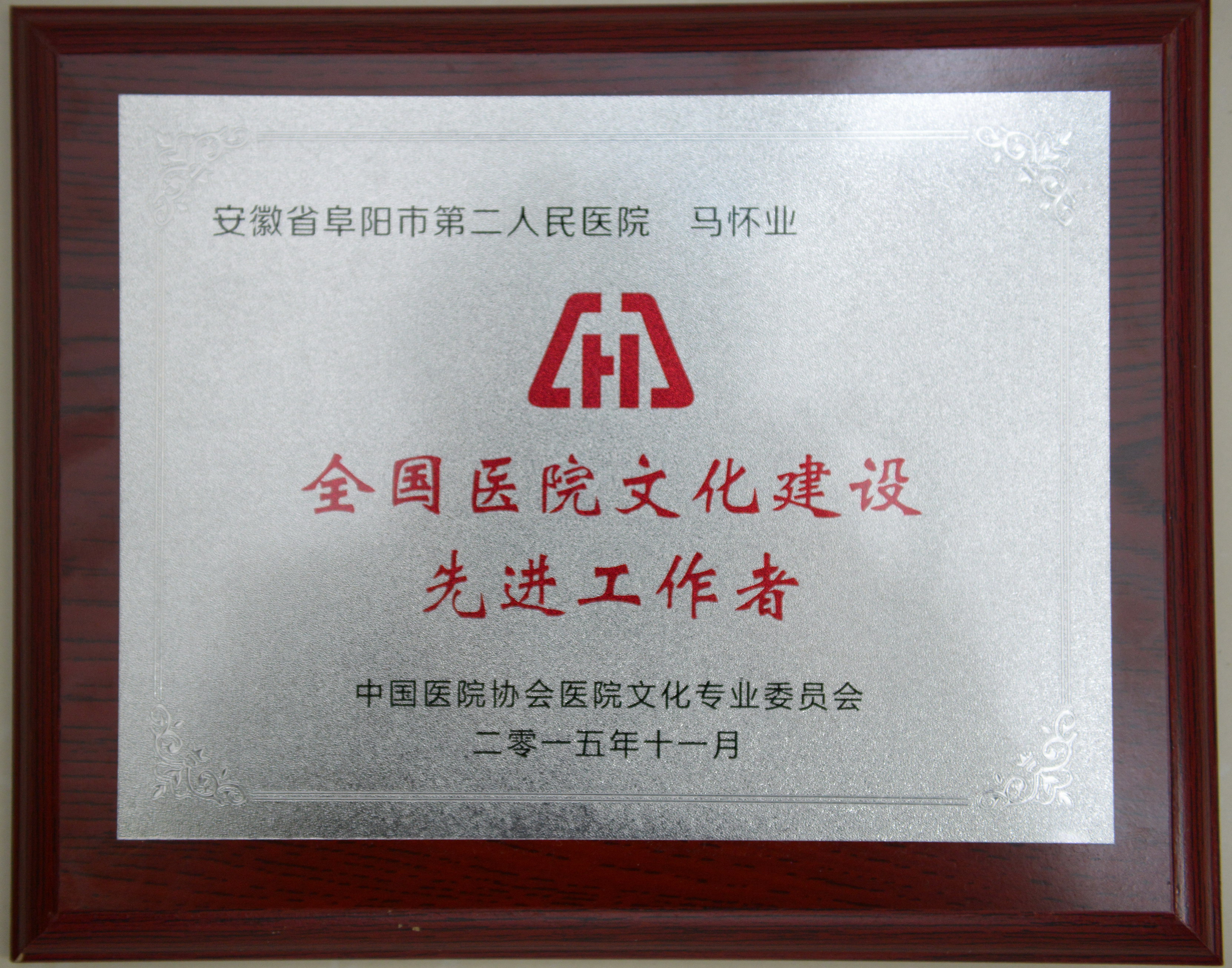 马怀业,男,汉族,1972年10月生,安徽阜南县人,本科学历,1995年7月参加工作,1997年7月加入中国共产党,阜阳市先进工作者。 现任阜阳市第二人民医院高级政工师、阜阳师范大学医学院兼职教授。 马怀业 现任阜阳市第二人民医院高级政工师,阜阳师范大学医学院医学人文专业兼职教授、阜阳市医院思想政治工作促进会第一届、第二届秘书长、阜阳市性学会第一届秘书长、阜阳市医疗卫生应急专家咨询委员会专家、阜阳市政工专业职格评审委员会委员,阜阳市“社科名家宣讲团”成员,中国医院协会医院文化专业委员会委员、中国医师协会医学人文专业委员会委员、安徽省卫生思想政治工作促进会理事、安徽省医院协会文化专业委员会委员、安徽省医院协会健康传播专业委员会委员、安徽省健康服务业协会人文健康分会副秘书长。 马怀业 近年来,先后在《中华医学研究杂志》、《中国医院统计》、《现代医院管理》、《中国农村卫生事业管理》、《医药前沿》、《医学信息》和《中国医院》等国家级期刊发表论文或论著20余篇。2010年3月20日,医院品牌的创建研究(立项编号:A09019)荣获阜阳市社会科学优秀成果奖。2013年元月,调研报告《“以专科带动综合,以综合提升专科”的传染病医院发展模式》得到上级卫生行政主管等部门的肯定,被收录《中国发展模式研究》一书。 《论加强医院文化建设构建和谐医患关系》,独撰,载于《中华医学研究杂志》,年卷(期):2007,007 (12) 《医院的情感管理初探》,独撰,载于《中国医院统计》,年卷(期):2008, 15(1) 《论以人为本构建和谐医患关系》,第一作者,载于《中国医院统计》,年卷(期):2008, 15(2) 《医院品牌的创建研究》,第一作者,载于《现代医院管理》,年卷(期):2010, 8(5) 《新形势下增强医院思想政治工作实效性探讨》,独撰,载于《中国农村卫生事业管理》,年卷(期):2013,(8) 《医院文化建设促进跨越式发展的做法和体会》,独撰,载于《中国医院统计》,年卷(期):2013, 20(1) 《浅议以思想政治工作为抓手,解决医院群众反映强烈的“四风”问题》,独撰,载于《医药前沿》2014,20 《坚持党的群众路线,做好新时期医院思想政治工作》,独撰,载于《中国当代医药》,年卷(期):2014, (25) 《浅谈以"三好一满意"活动为载体增强医院思想政治工作的实效性》,独撰,载于《医学信息》,年卷(期):2014, (22) 医院文化建设、医学人文与管理、卫生应急管理 全国医院文化建设先进工作者 1998年12月,被中共阜南县委表彰为全县党委系统信息工作先进个人。 1999年3月,被中共阜南县委、县人民政府联合表彰为“全县岗位责任制工作先进个人”荣誉称号。 2001年5月,被阜阳日报表彰为1999年——2000年度新闻报道优秀通讯员。 2003年7月,被中共阜南县委表彰为全县优秀共产党员。 2004年5月,被阜阳市人民政府办公室评为2003年度全市政务信息工作先进个人。 2005年6月,被阜阳市人民政府办公室、阜阳市人事局评为2004年度全市政务信息工作先进个人。 2007年3月,被阜阳市消费者协会授予2006年度先进消费者荣誉称号。 2007年,撰写的通讯《为了灾区人民的健康》被安徽省卫生厅、安徽省新闻工作者协会评为“2006—2007年安徽省卫生好新闻暨结核病防治好新闻”贰等奖。 2009年~2011年,连年荣获医院年度先进工作者荣誉称号。 2011年10月,荣获安徽省卫生厅、安徽省新闻工作者协会表彰的“2010~2011年度全省卫生系统宣传工作先进个人”。 2012年7月,撰写的《男子心跳骤停70分钟后“复活”》被安徽省卫生厅、安徽省新闻工作者协会评为“2012—2013年安徽省卫生好新闻二等奖。 [2] 2015年9月,合作撰写的《浅谈在岗前培训中传承医院文化》,荣获淮海经济区医院思想政治工作研究会第二十九届年会暨第十九届医院文化建设研讨会优秀论文奖。 [23] 2015年11月,《浅谈在岗前培训中传承医院文化》荣获全国公立医院改革与医院文化建设”主题征文一等奖。 2015年11月,被评为“全国医院文化建设先进工作者”。 [5] 2018年10月,被阜阳市委宣传部表彰为“阜阳市‘四个一批’优秀新闻工作者和“全市十佳通讯员”荣誉称号。 [4] 2018年3月,被表彰为全市卫生计生宣传信息与健康促进工作先进个人。 [15] 2019年4月,被评为阜阳市卫生健康系统宣传工作先进个人。 2020年5月,被中国卫生摄影协会表彰为“全国抗击疫情工作先进个人”。[3] 2022年1月,被中共阜阳市委、阜阳市人民政府表彰为阜阳市先进工作者(市劳动模范)荣誉称号。 [1] 多次应邀在安徽医院协会医院文化专业委员会学术年会和淮海经济区医院思想政治工作研究会年会暨医院文化建设研讨会上作学术或经验交流。 安徽省医院管理协会文化专业委员会第三届年会暨医院文化建设研讨会(2006年12月22~24日•淮北)——交流题目:《医院文化管理中的情感管理初探》(2006.12.23淮北)。 安徽省医院管理协会文化专业委员会第五届年会暨医院文化建设研讨会(2008年12月3~5日·滁州)——交流题目:《关于医院品牌的创建》(2008.12.4·滁州)。 安徽省医院管理协会文化专业委员会第六届年会暨医院文化建设研讨会(2010年12月11~13日•马鞍山)——交流题目:《以优秀的医院文化树立服务品牌》(2010.12.12马鞍山)。 2015年举办了市级医学教育与卫生管理类继教项目《医院文化管理与员工价值取向研讨班》【项目编号2015-15-02-0002(null)】